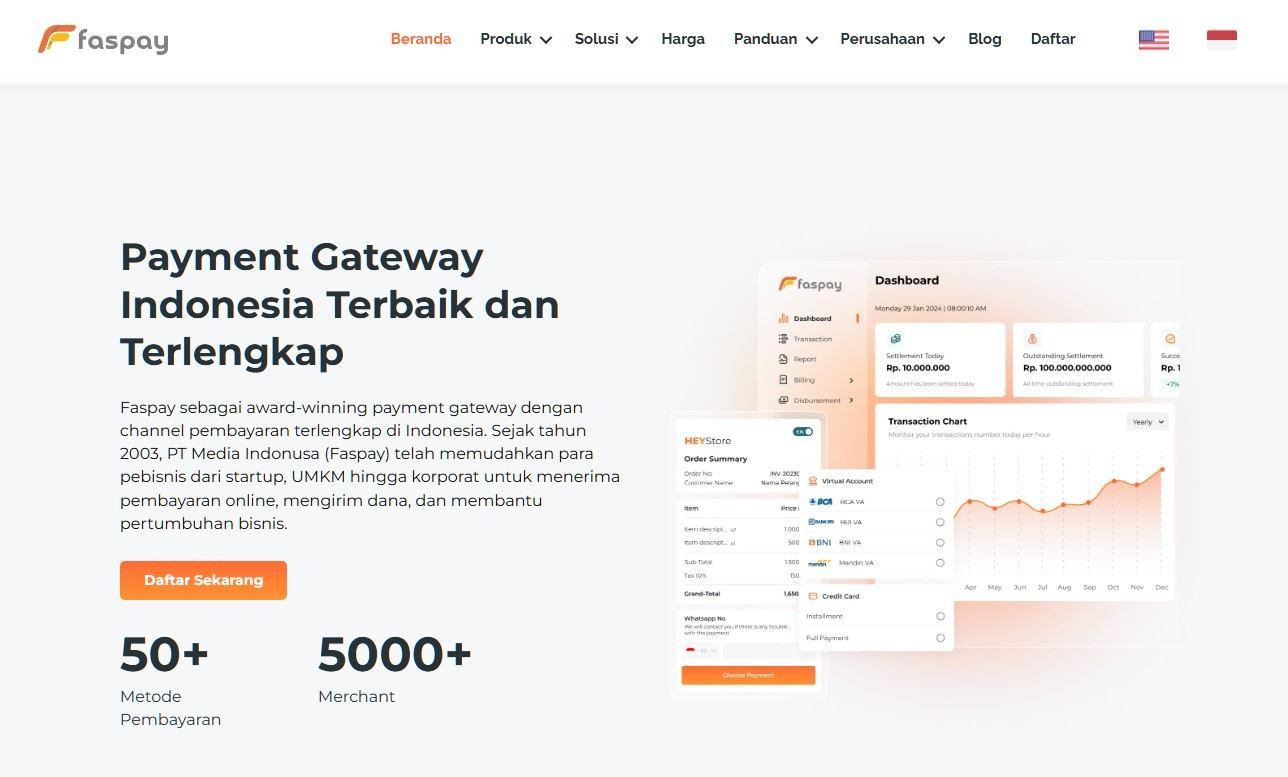 Faspay presents itself as an all-in-one gateway, claiming support for over 50 payment methods, including credit cards, e-wallets, virtual accounts, and retail payments through a single integration. This wide range can be beneficial if you serve diverse demographics or want to minimize drop-offs due to unavailable methods.
