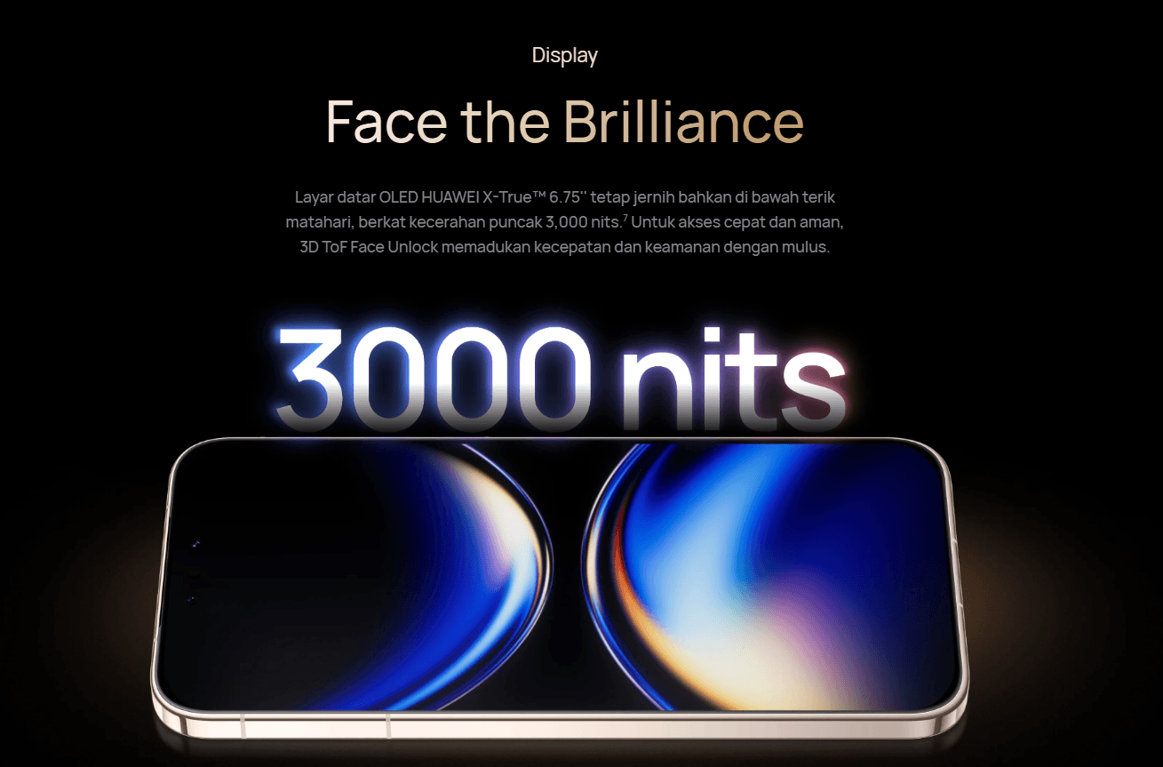 HUAWEI Mate 80 Pro hadir dengan layar LTPO OLED canggih yang menawarkan kualitas gambar memukau. Berkat refresh rate adaptif 1-120 Hz, Anda akan mendapatkan transisi layar yang super smooth saat bermain game, menonton video, atau bahkan sekadar scrolling media sosial. Ditambah lagi dengan kemampuan 1440 Hz high-frequency PWM dimming yang mengurangi efek flicker pada layar, smartphone ini sangat nyaman untuk digunakan dalam waktu lama, bahkan di pencahayaan redup.